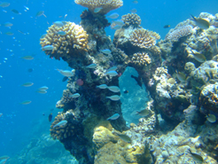 水深が深くないので、元気なサンゴが上から綺麗に見える。 魚は、まぁ、それなりなのですが とにかくサンゴが綺麗であった。