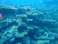 水中は、サンゴが元気で嬉しいくらいだ。 死んでいる珊瑚はほとんどない。 沖縄の慶良間とか石垣とかの
