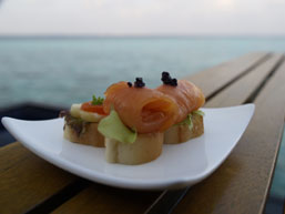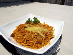 | 奥さんチョイスのパスタ | だんなチョイスのハンバーガー | 夕方に毎日出してくれるカナッペ |