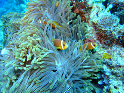ウメイロモドキが沢山いて、クマノミもイソギンチャクが流れでゆれゆれなのに