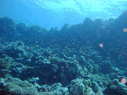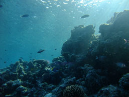 一生懸命、フィンを使って泳いでドロップオフまで来ると嘘の様に流れがゆるくなる。